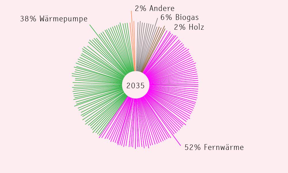 Wir streben an, dass wir bis etwa im Jahr 2030 die Ölfeuerungen ganz ersetzt haben und weniger als 15 Häuser mit Gas beheizt werden. Bis 2035 möchten wir ganz frei sein von fossilen Energiequellen.