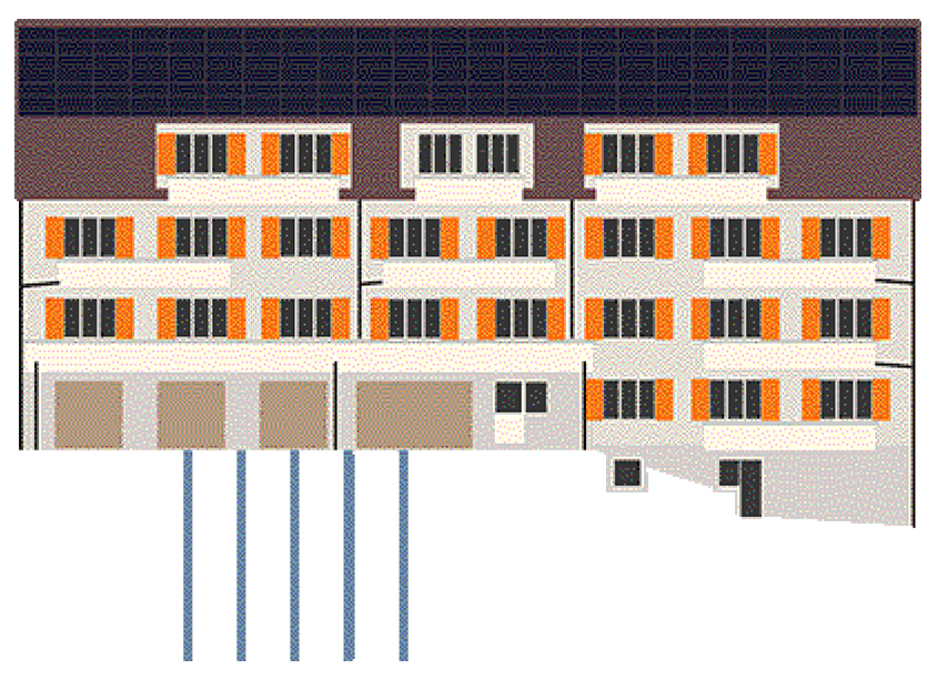 Ackersteinstrasse 167–171, Zürich. Die 1933 erstellten drei Gebäude mit insgesamt zehn Wohnungen wurden energetisch saniert. Die bestehende Ölheizung wurde ausser Betrieb genommen und durch eine Sole-Wasser-Wärmepumpe mit Erdsonden ersetzt. Die Wärmeerzeugung kommt in Zukunft ohne fossile Energiequellen aus, es werden jährlich ca. 35 Tonnen CO2 oder 12 000 Liter Heizöl eingespart. Zusammen mit dem Wechsel des Energieträgers wurde die Gebäudehülle optimiert. Das Dach wurde gedämmt, neu eingedeckt, und auf der südwestseitigen Dachfläche wurde eine Fotovoltaikanlage installiert. Die Stirnseiten des Gebäudes und die bauphysikalisch heiklen Gebäudeecken wurden aussenseitig mit Mineralwolle gedämmt, ebenso wurde die Kellerdecke gedämmt. Die bestehenden Fenster mit ungenügendem Wärmeschutz in den Wohnungen wurden durch neue Holzmetallfenster ersetzt. Bauteile, die sich in gutem Zustand befanden, beispielsweise die Fensterläden oder die Treppenhausverglasung, wurden ertüchtigt und weiterverwendet. Mit den Dämmmassnahmen wird der Energiebedarf um rund einen Drittel sinken.