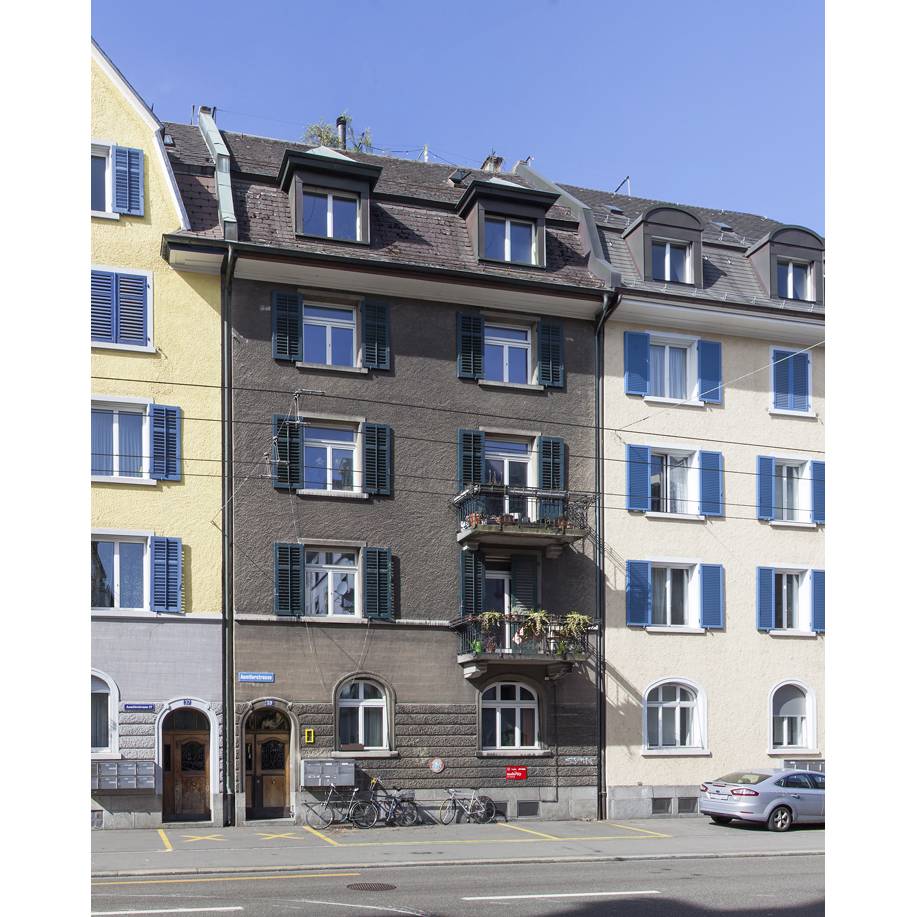 Mitten im belebten und beliebten Kreis 3 liegt diese Alt-Liegenschaft. Sie verfügt über fünf identische Drei-Zimmer-Wohnungen mit preiswerten Mietzinsen, dafür einem etwas tieferen Standard. Einige Mieter*innen haben die Wohnungen schon vor dem Kauf der Wogeno geschmackvoll renoviert. Die schöne Dachterrasse ersetzt im Sommer den Garten und wird von den Bewohner*innen rege benützt. Im Laufe der Jahre wurde die Heizung erneuert, die Fenster ersetzt und die Dachterrasse aufgefrischt.